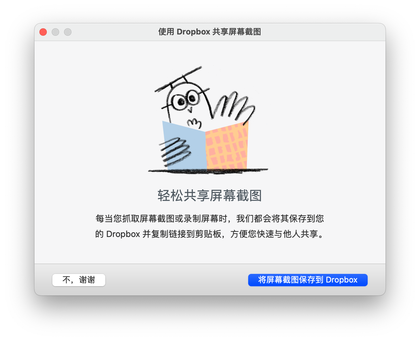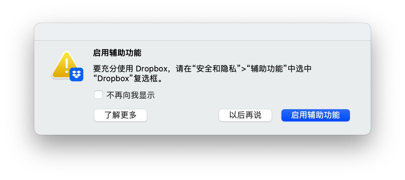 商业解决方案只对让用户锁定并不断向他们推销更多功能感兴趣。因此,你会收到通知、特性和弹窗。例如,在这个截图中,我刚刚在一台新机器上安装了 Dropbox 后: